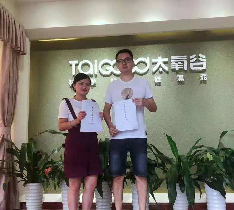 東莞厚街的林總和東莞鳳崗的安總,二位本身是做家裝定制的,對家裝行業也是十分了解,明白到隨著人們環保意識的增強,在家裝行業,環保裝修是大勢所趨。相對來說,墻面壁材的選擇尤為重要,既要符合現代人們追求美觀的心態,也要符合人們環保的理念,硅藻泥實為不二選擇。林總和安總也一直都有留意硅藻泥的市場發展,在選擇硅藻泥品牌上十分慎重,做過很多品牌的對比,深知要想生意長久必須要選擇優質的品牌。二位分別都直接過來太氧谷總部實地考察研討,感覺太氧谷硅藻泥產品線齊全,白炭黑系列產品質地細膩、觸感柔滑,色澤柔和,高雅中呈現不凡品味,產品工藝強大且環保又健康符合現今家庭裝修需求,還說太氧谷終端建設支持和各大扶持工作都很給力,有了保障再加上全程服務支持,林總和安總當即決定和太氧谷簽訂合同。