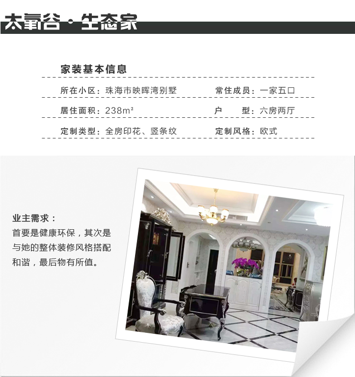 在北京深受霧霾的侵害和困擾,一直以來我和家人們都是環保健康的擁護者,所以我們在吃穿住行方面都很在意,堅持健康綠色,低碳環保的生活理念。在裝修這件事上,也花了很多的心思,從裝修材料到家居,都盡量選擇環保的材質,尤其是家里還有老人和小孩,所以在選材方面更不敢馬虎。說起來像室外的霧霾我們是無法控制和決定的,所以我們搬到了珠海,但室內的環境和空氣質量是自己決定的,所以在室內裝修上,我們特別嚴謹挑剔,首先考慮的就是健康環保。