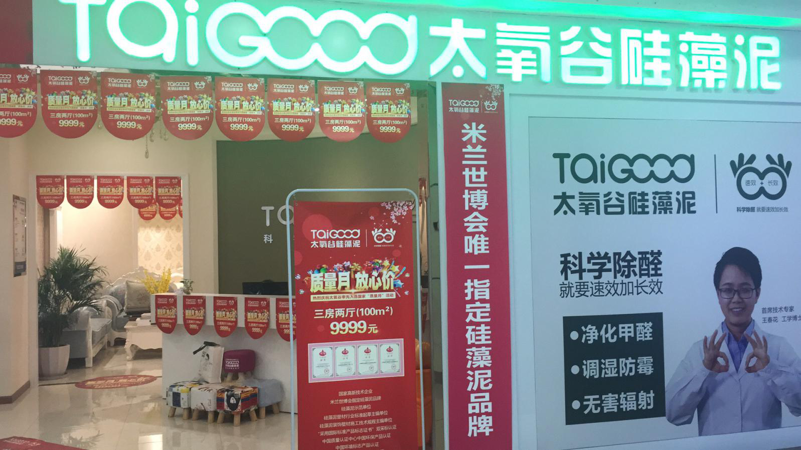 太氧谷品牌設(shè)計墻的前面,張貼了太氧谷連獲五項質(zhì)量大獎的宣傳單張,市場監(jiān)管局對太氧谷產(chǎn)品質(zhì)量的充分肯定,是客戶選擇硅藻泥品牌的重要依據(jù)。周總信心滿滿的坐在前臺處,他說榮譽即是品牌,只有選擇優(yōu)質(zhì)的品牌才是客戶消費的信心保證。