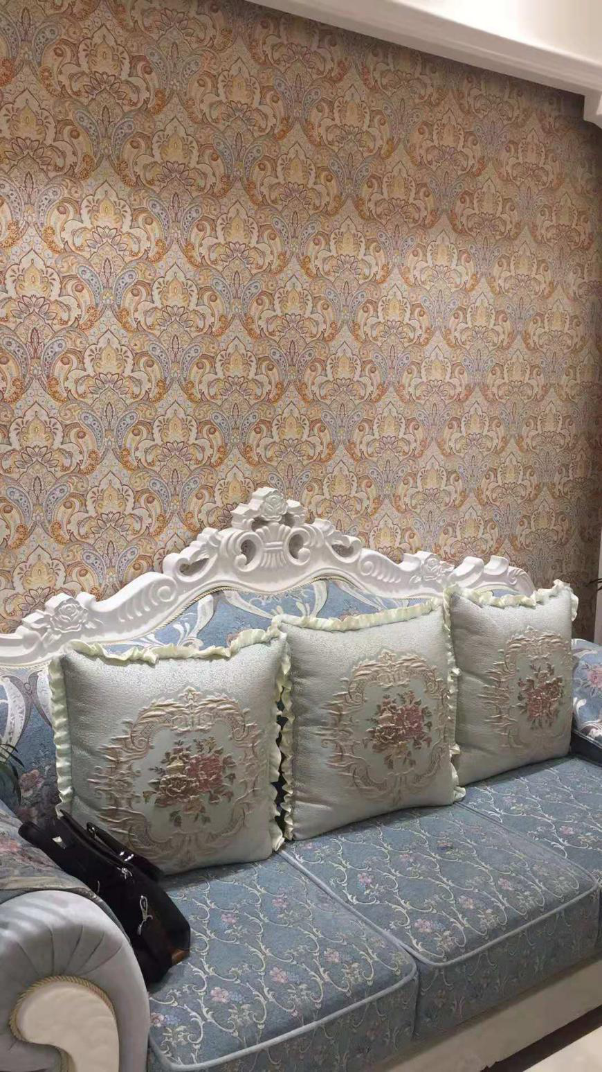 臥室背景墻展示的是太氧谷硅藻泥新品《維爾納》,尊貴的歐式設(shè)計,復古花型和線條的搭配,形成清晰的層次感和光影變化。