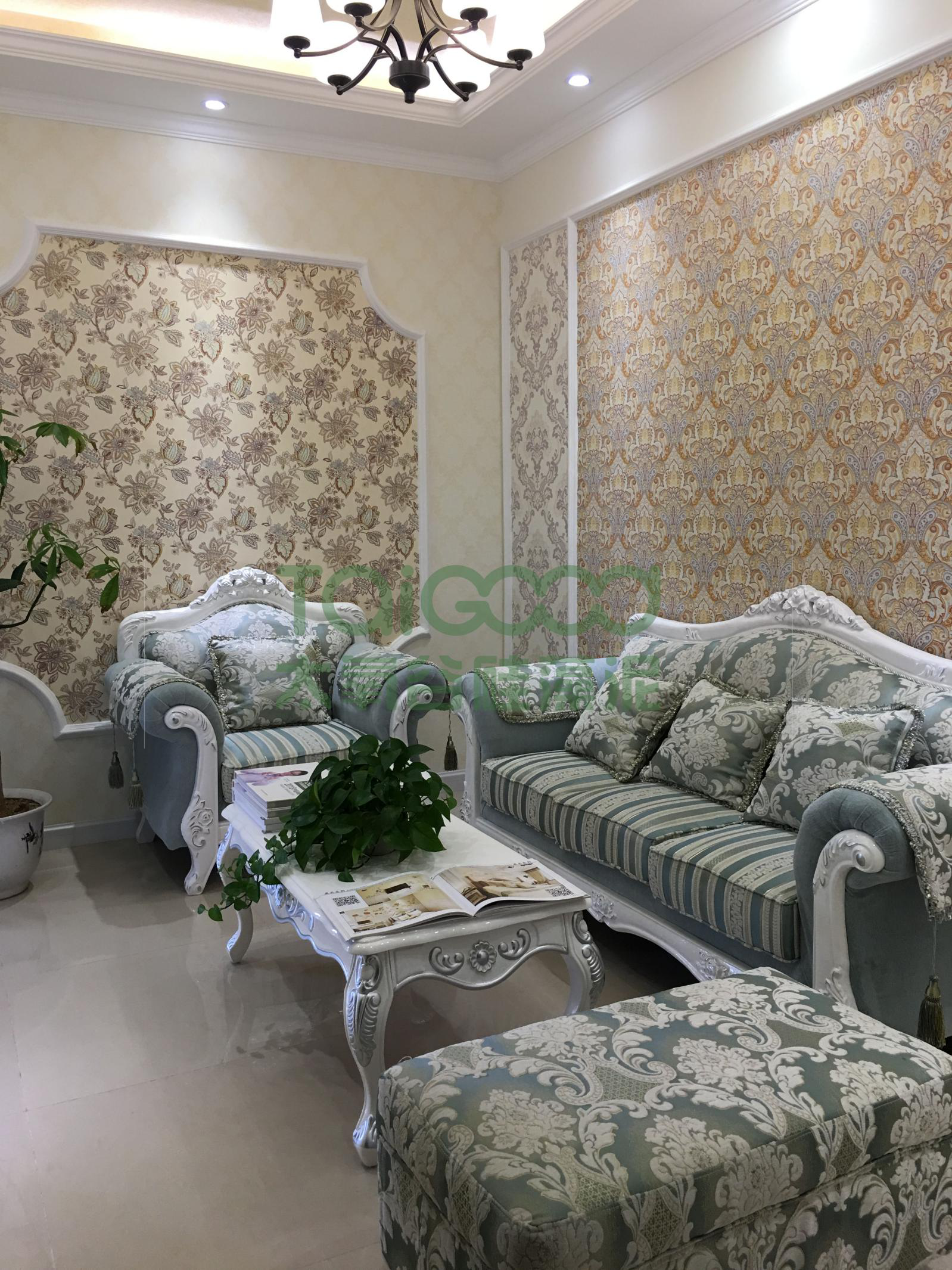 新興店設計了幾個獨立的體驗區(qū),有客廳、臥室、兒童房,各個體驗區(qū)均展示了太氧谷硅藻泥的原創(chuàng)藝術產(chǎn)品。如奢華大氣的旗艦臻品《漢莫拉比》、歐式典雅的《香榭麗舍》、現(xiàn)代簡約風格的、肌理系列等。