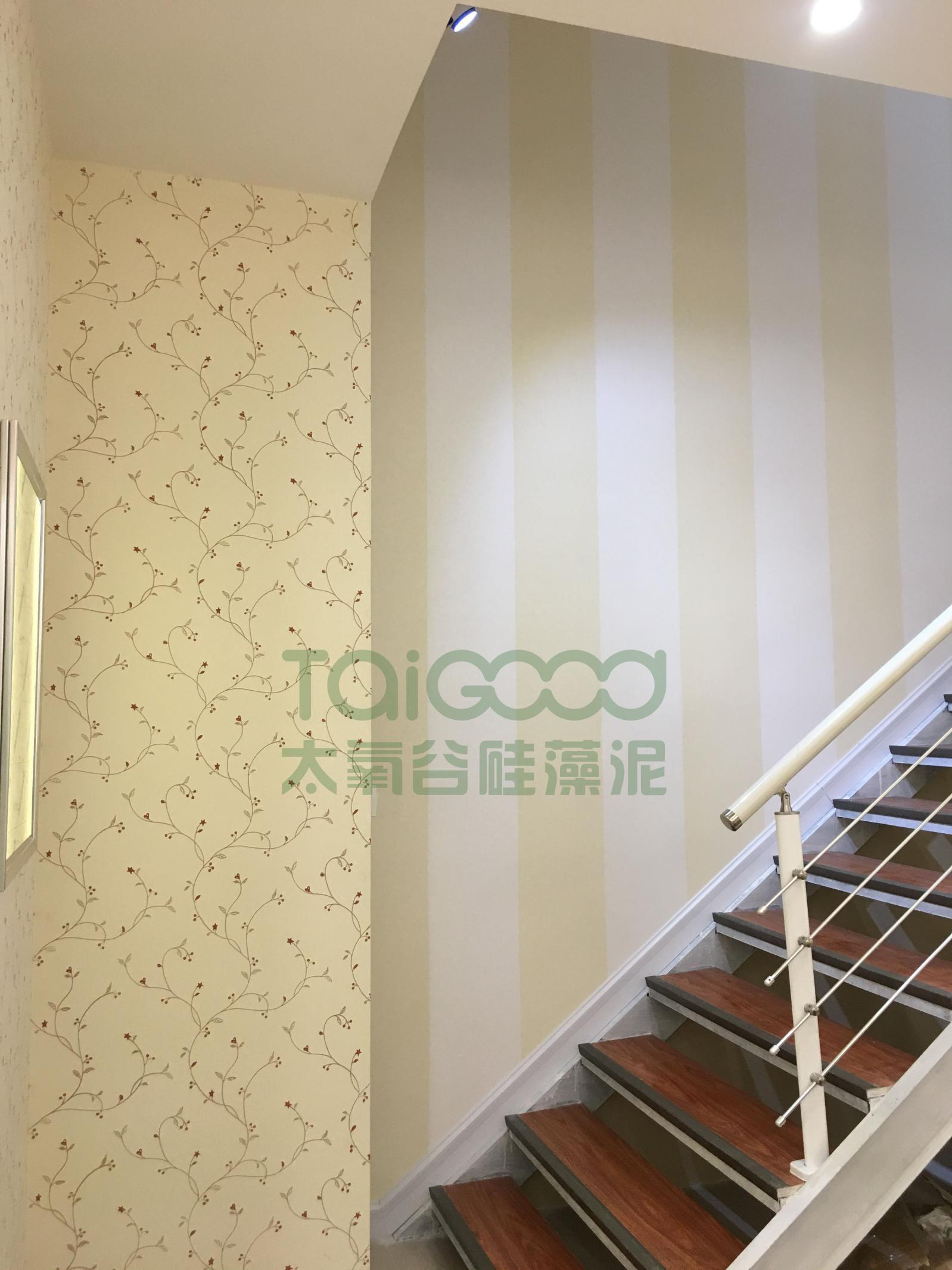 現(xiàn)在很多家庭都傾向于精致的復式公寓,復式樓梯也不能忽視,設計得合理再加上美觀的墻面,更是可以完美體現(xiàn)家人的生活態(tài)度。新興店在樓梯展示區(qū)設計了太氧谷硅藻泥的中式風格《花間小憩》和現(xiàn)代風格的美涂,滿足了不同消費者的需求,年輕一代崇尚簡約時尚,老一輩的向往古典優(yōu)雅。