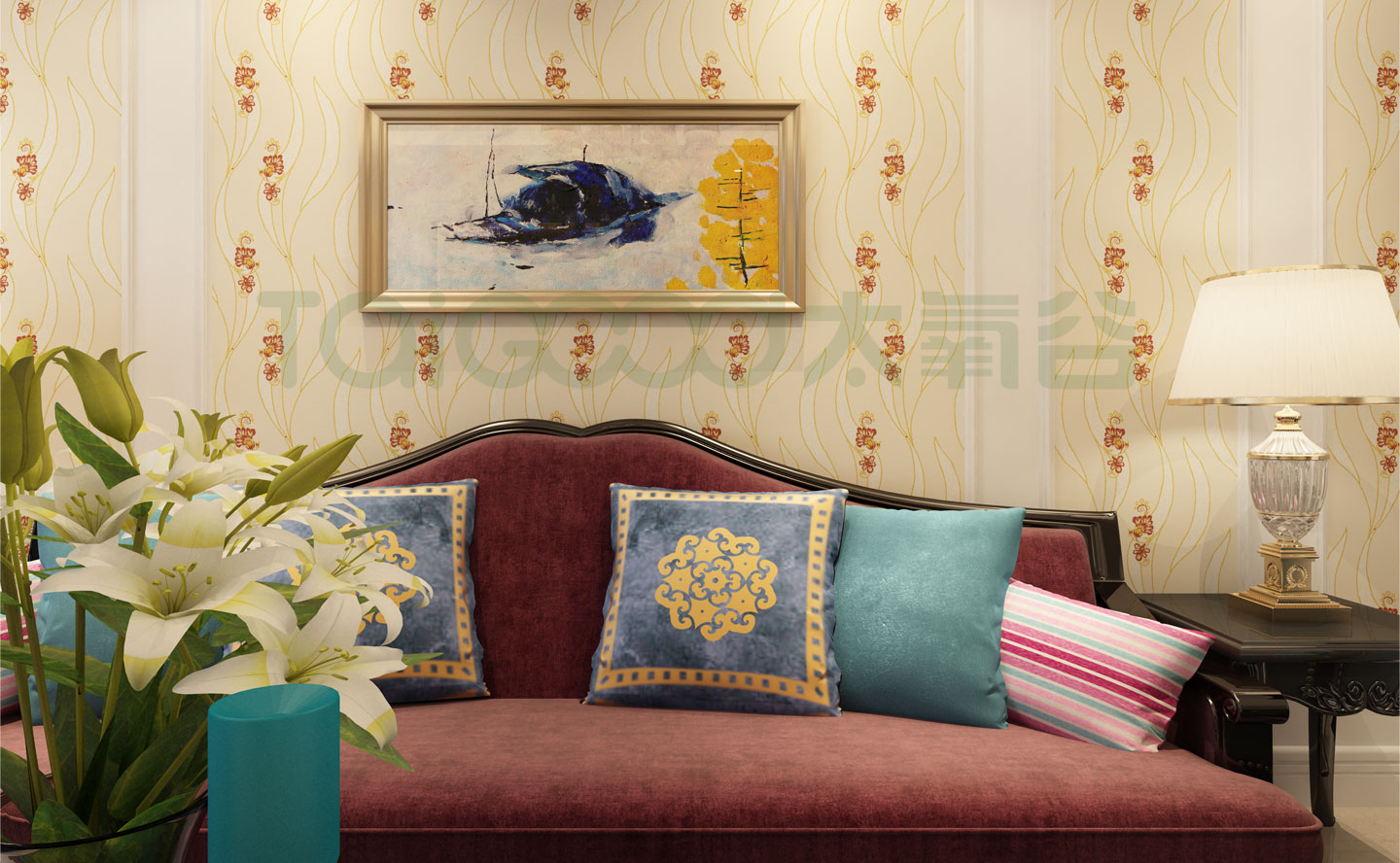 浪漫復古的圖案與珠簾流暢線條交錯 無...
