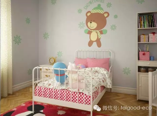 由于兒童的抵抗力不及成人的50%,在室內的活動時間是成人的兩倍以上,而且墻面的面積約占整個房屋裝修的80%,因此墻面材料的環保與否決定了整個家裝的環境質量。所以在兒童房裝修在墻面的選材上,必須以天然、自然素材為佳 ,硅藻泥便是兒童房墻面的最佳選擇。這種純天然海洋寶藏不但自身不含有害物質,沒有異味,更能夠消除甲醛、凈化空氣、呼吸調濕、防霉防潮。