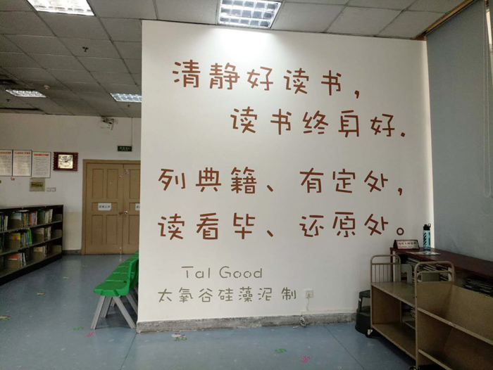 硅藻泥加盟的防潮防霉、防火阻燃,一定程度上成為了保護管內圖書的衛士,讓圖書可以歷久彌新,保存得更持久更具傳承性。而且,硅藻泥無機啞光色、色彩柔和,當孩子們在涂覆硅藻泥的圖書館看書時,墻面反射光線自然柔和,不容易產生視覺疲勞,保護孩子們的視力,讓他們放松心情,暢游在書的海洋里。