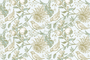 盛開的花間,鳥兒們振翅停佇,與花朵細語,與果實嬉戲。溫馨淡雅中又不失清新靈動。所有的春天,為你唱花香自來,在春風里,在繽紛的花下,想起你。