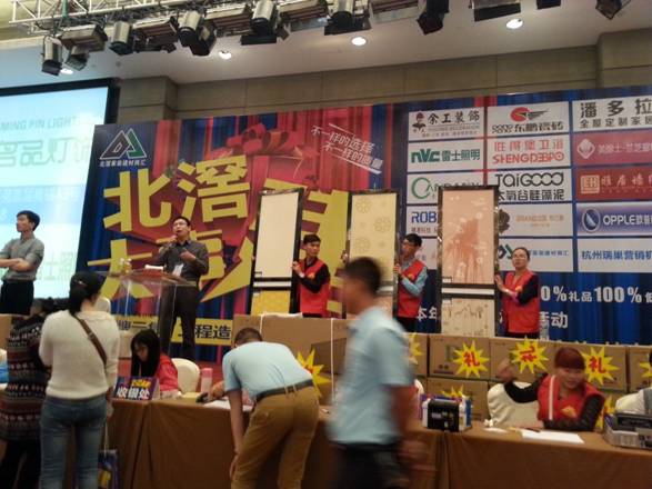 由于前期充分的準備,精心的籌劃以及在順德北滘乃至佛山周邊城市的大力推廣,整個活動現場人氣爆表,偌大的國際宴會廳,被洶涌的人群擠得滿滿當當,熱鬧非凡。活動在13點左右正式開始,在為消費者代言爭取商家最大讓利的王牌砍價師兼主持人陳老師的預熱引導下,現場氛圍快速引爆,高潮不斷,臺上砍價師步步緊逼咄咄逼人,臺下業主客戶們搖拍吶喊一片狂歡,各品牌代表則是節節敗退連連讓步,做出最大讓利最終折扣,讓業主客戶們實實在在享受到了各大品牌不可思議的鉅惠折扣,直接引爆一波接一波的簽單熱潮!簽單結束還有抽獎環節大獎贈送,獎品不斷,驚喜不斷,揭曉特等獎時更是將氣氛推向高潮,直至活動宣布結束,大家仍意猶未盡,流連忘返,在各品牌展區前與商家做深入了解溝通,讓大事“建”活動完美收官!