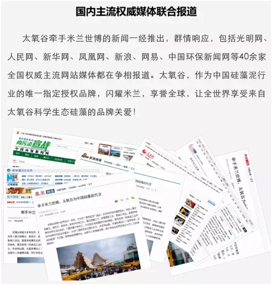 “牽手米蘭世博,太氧谷為中國硅藻泥代言”的新聞有多熱?看看有多少主流權(quán)威媒體報道您就一定能感受到了!代表中國硅藻泥行業(yè),登國際大舞臺,太氧谷實力及影響力有目共睹!