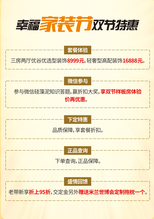 硅藻泥的功能性還滿足不了您挑剔的品味!16888元輕奢型高配裝飾,肯定能讓您幸福感爆棚!為您私人量房定制的更高級(jí)的整體搭配,更個(gè)性品位的墻面藝術(shù)美學(xué),享受無(wú)與倫比的科技、生態(tài)、綠色完美結(jié)合的視覺(jué)盛宴!