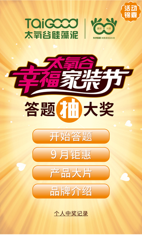 太氧谷硅藻泥這次召集全國(guó)百城千店真情鉅獻(xiàn),與萬(wàn)千業(yè)主一起共迎佳節(jié),歡度一個(gè)沒(méi)有甲醛的幸福家裝節(jié)!