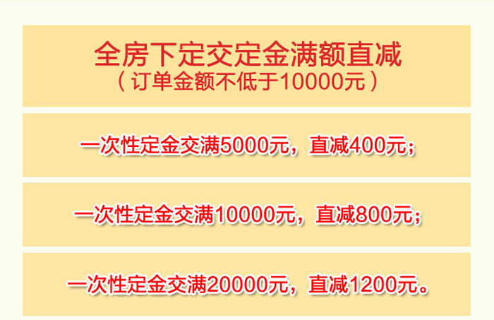 幸福還需要不套路實(shí)打?qū)嵉臏p現(xiàn)來(lái)加碼!凡全房下定的客戶交滿一定數(shù)額定金,可直接優(yōu)惠減現(xiàn)!不是抵扣,不是送券,而是直接減現(xiàn)金,最高可達(dá)1200元!
