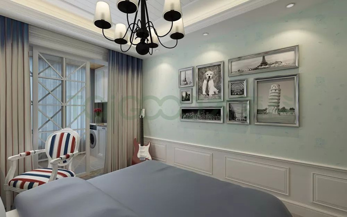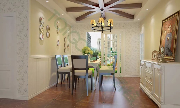 墻面可以用蛋殼青、米黃色,很多美式家庭的的都喜愛的墻色,既不單調,又不會產生疲勞感。寧靜溫暖。