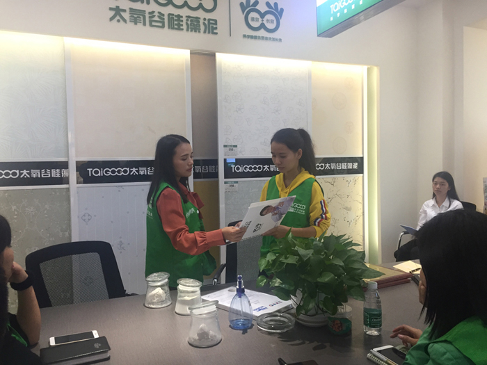 其次,基于硅藻泥功能性產品的特殊性,硅藻泥產品的基礎知識也是每個銷售精英務必要掌握牢記并且熟練運用的。對于目前魚龍混雜的硅藻泥市場來說,品牌的專業度直接影響客戶的信任度,在專業知識上說服客戶,比任何銷售技巧更有力量更有沖擊力,太氧谷硅藻泥在打造“硅藻泥行業最專業的,品質最過硬的,是值得信賴的”專業化品牌形象上不遺余力。因此,培訓導師王增芬老師在硅藻泥基礎知識的講解上,花了最長的時間篇幅,務必讓每個學員都成為硅藻泥行業的專家。而硅藻泥行業最專業化的服務,也勢必成為太氧谷在未來品牌競爭中最閃亮的一道金字招牌!