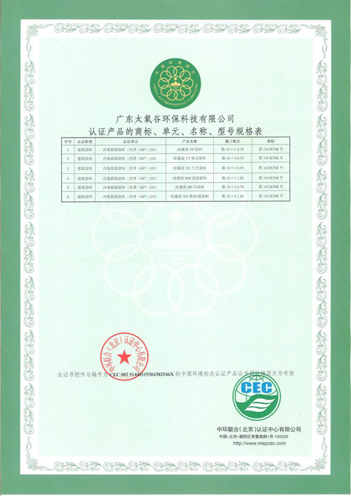 十環認證不僅是對太氧谷硅藻泥產品環保品質的充分肯定,也是企業品牌實力的有力證明,更是消費者選購綠色產品的權威依據,該認證將助力太氧谷全國近400家體驗店提升消費者對品牌的信任度,擴大太氧谷在終端市場的知名度與影響力。太氧谷硅藻泥會以此為激勵和動力,繼續將質量與環保作為企業發展的根本,履行企業環保的社會責任,始終致力于為消費者提供放心、優質的高端環保品質產品,從而推動硅藻泥行業更好更快的向前發展!