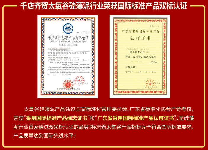 硅藻泥品牌、硅藻泥壁材行業標準起草主編單位、硅藻泥裝飾壁材施工技術規程主編單位、中國生態環境建材分會示范單位,成為行業極具影響力品牌之一!還通過“中國環境標志產品認證證書”(十環認證),榮獲“采用國際標準產品標志證書”和“廣東省采用國際標準產品認可證書”,是硅藻泥行業首家通過雙采標認證的品牌,同時也是前三家通過國家質量認證中心中國環保產品認證的品牌!