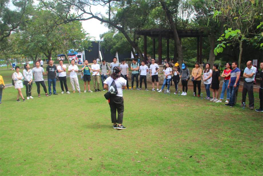 由于公司人員的急劇擴張,新員工的不斷加入,部門與部門之間業務的不同,很多同事之間還略顯生疏。因此游戲開始之前的第一個環節,就是所有員工圍成一個圓圈,由太氧谷品牌總監詹總帶頭做自我介紹,或嚴肅或詼諧的自我推介,展示了每個人不同的性格與個性,迅速地拉進了彼此的心,消除了隔閡和距離感,也為接下來的團隊合作游戲奠定了輕松愉快的氛圍。