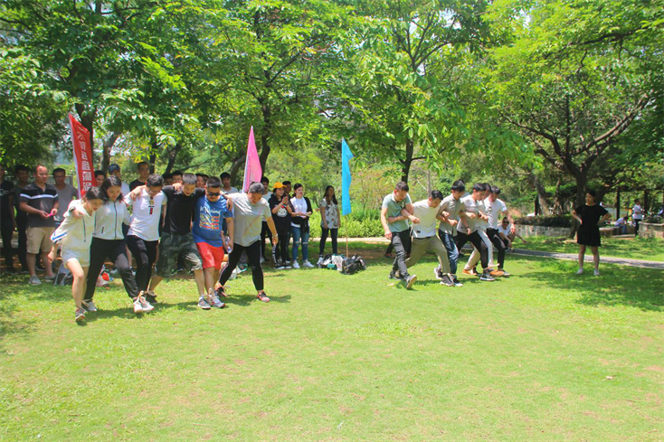 此次團建活動游戲環節所有人員被分成了6個戰隊,每個戰隊都有2個補給包,每個補給包內的食物都是一樣的,每次輸掉的一方都要將物資交接給勝利的一方。本次4個游戲都是以團隊協作為主,無論是考驗搭檔默契的步步驚心“地雷陣”、反應一致“眾志成城”、還是團隊協作分秒必爭的“同舟共濟”、笑果不斷的“二人三足接力賽”,都更注重團隊成員的參與性、親歷性,追求過程的內涵性,讓大家在輕松愉悅的氛圍中,既能享受到競爭對抗的緊張刺激感,又能感受大家互相包容互相幫助的溫暖。
