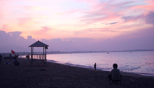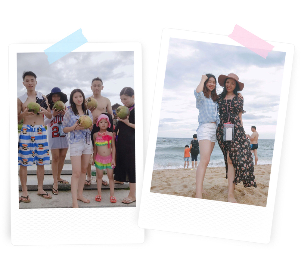 一頓飽餐后,正午暑氣已過,大家乘著大巴到酒店辦理入住,乘車的疲憊在躺上床的一刻得到緩解,休息片刻后大家來到月亮灣。慶幸的是此時(shí)的天氣很好,晴空萬里,海風(fēng)拂面。