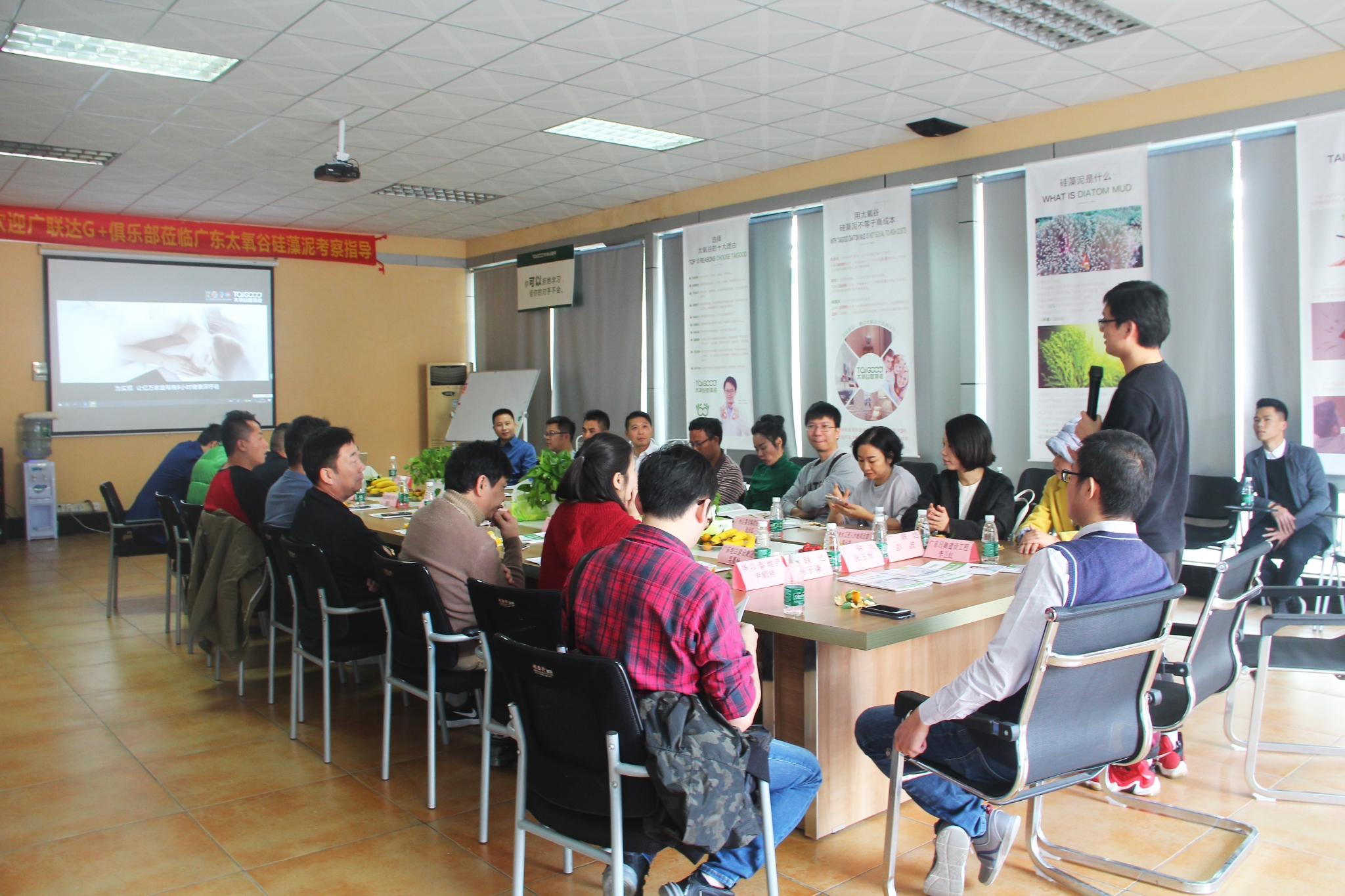 接著,考察團(tuán)一行移步至?xí)h室,培訓(xùn)部廖老師帶給到訪人員一場(chǎng)精彩絕倫的品牌宣導(dǎo)。從企業(yè)歷程到品牌故事,再到產(chǎn)品的風(fēng)格特色和嚴(yán)謹(jǐn)革新的專業(yè)施工案例,充分地展示了太氧谷硅藻泥執(zhí)著的工匠精神和雄厚的品牌實(shí)力。廖老師演講完畢后,考察團(tuán)人員與劉總、詹總進(jìn)行了激烈深刻的討論,大家暢所欲言,共同探討硅藻泥行業(yè)未來(lái)可觀的發(fā)展趨勢(shì),相互交流各行領(lǐng)域的友好互助。太氧谷硅藻泥始終堅(jiān)持創(chuàng)新的理念,領(lǐng)航硅藻泥行業(yè)的良性發(fā)展,以維護(hù)客戶價(jià)值為己任,為廣大業(yè)主單位筑造天然生態(tài)的家居環(huán)境。