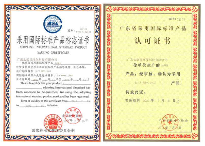 硅藻泥榮獲“雙采標”認證,核定太氧谷產品指標完全符合國際標準要求,產品質量達到國際先進水平。