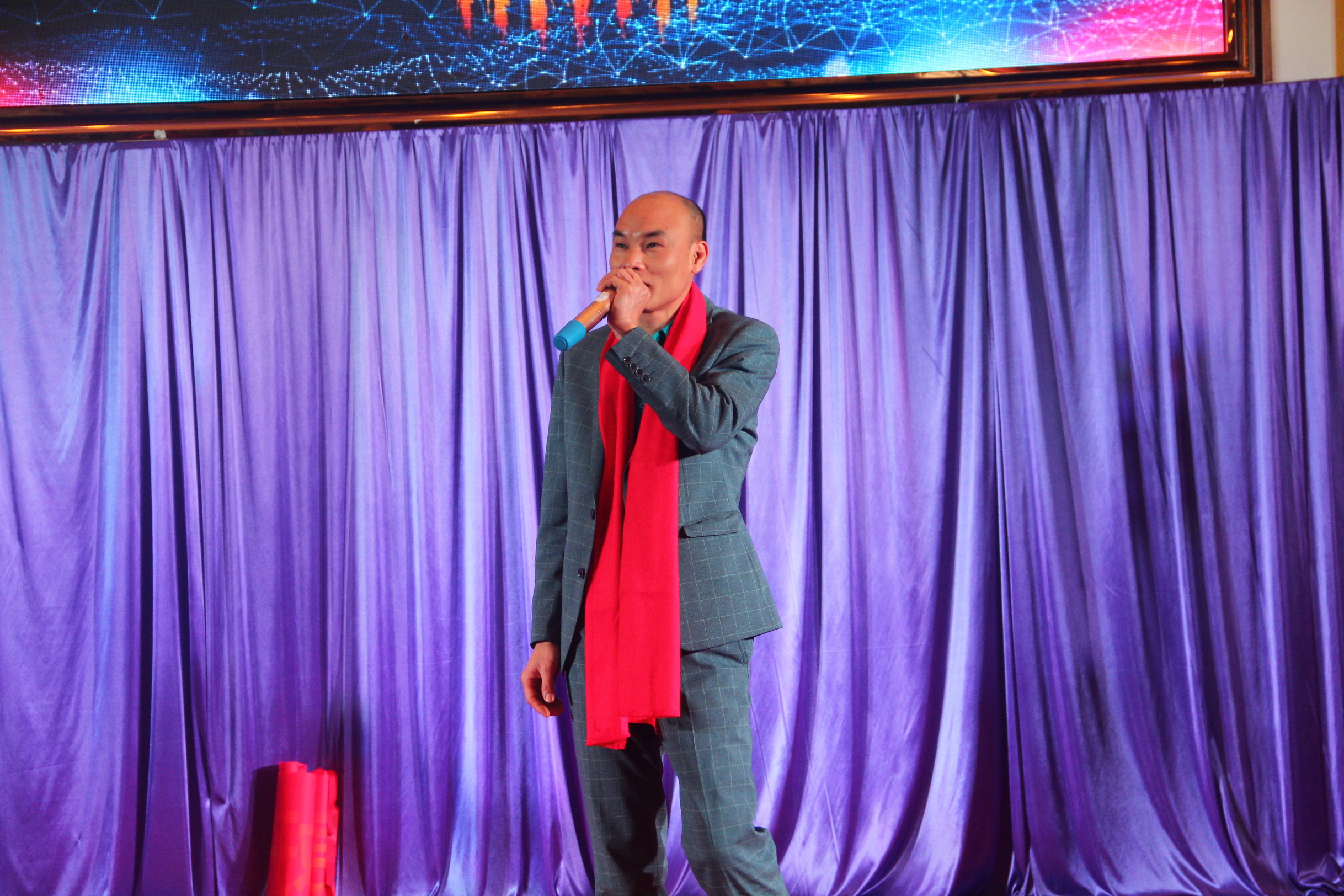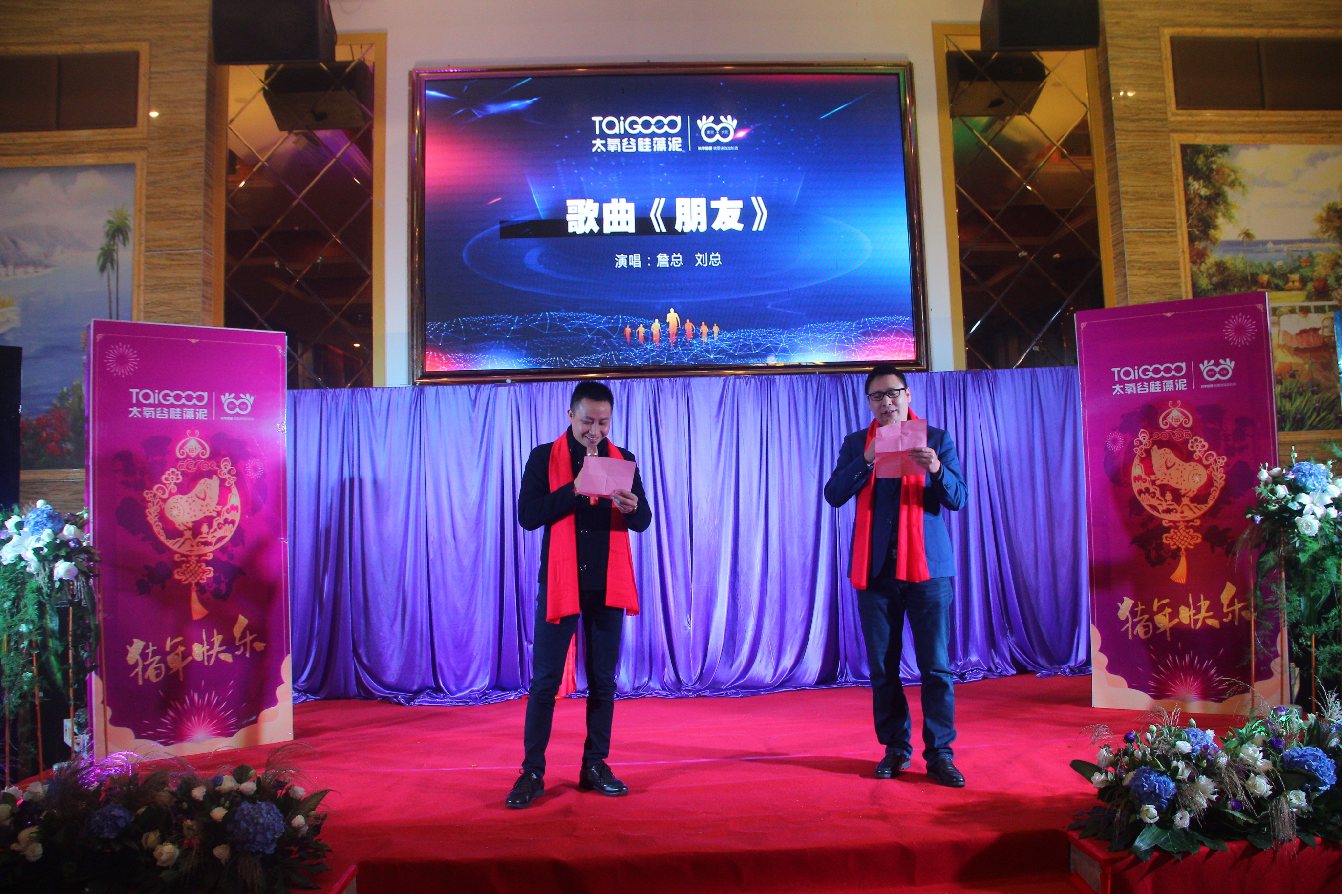 時光荏苒,太氧谷不乏默契十足的搭檔,他們多年前已認識,并志同道合;他們攜手同行,共同進步,走向明日的輝煌和成功。主持人熱情邀請了劉總和詹總為我們演唱一曲《朋友》。一曲《朋友》道盡了彼此的友誼,如歌中所唱“朋友一生一起走“,一起并肩與太氧谷同行。期間,還邀請了生產部詹主管一同上臺,詹主管現場為我們清唱一曲情歌。