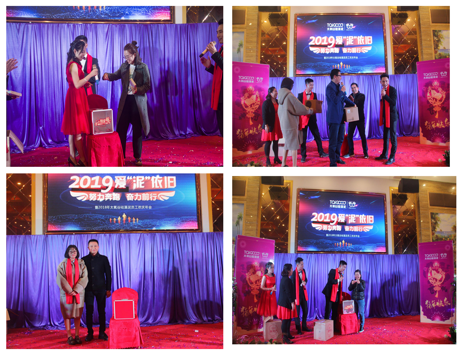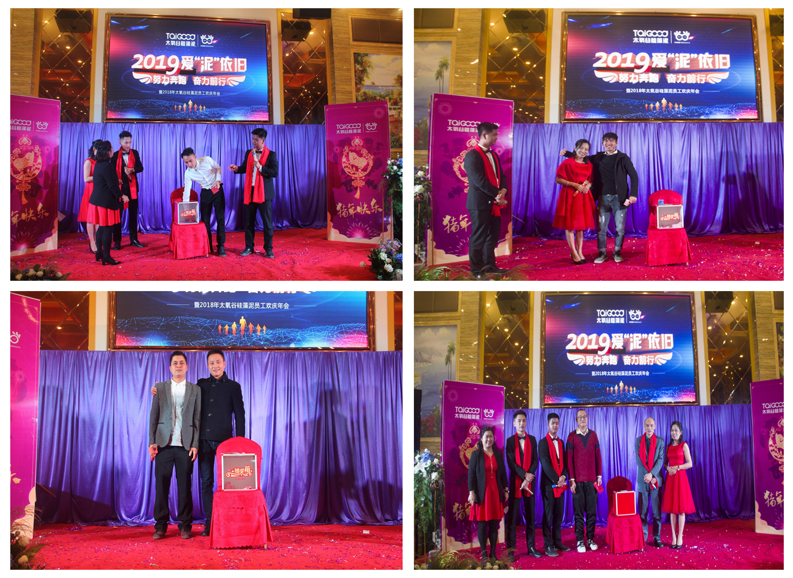太氧谷硅藻泥總部以“2019·愛"泥"依舊!努力奔跑·奮力前行!”為主題的公司內部年會在廣州南沙圓滿舉行。太氧谷總部大部分人員齊聚一堂(部分施工技師還在外為加盟商做施工扶持,辛苦了!),共同回顧碩果累累的2018,展望璀璨美好的2019。首先,感謝各部門的小伙伴們共同策劃、協調和配合,讓一場流光溢彩的年終晚會如約而至。