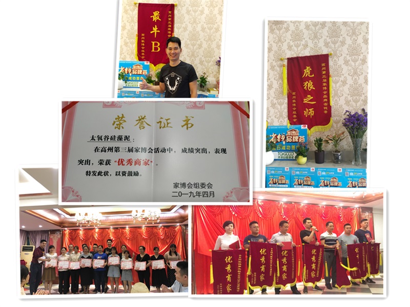 在本屆家博會的活動中,太氧谷硅藻泥與其他建材聯盟伙伴共同獲得“最牛B”和“虎狼之獅”的團隊稱號,并借此平臺給各品牌的“優秀員工”頒獎。除此之外,太氧谷以成績突出、表現突出榮獲"優秀商家"稱號!