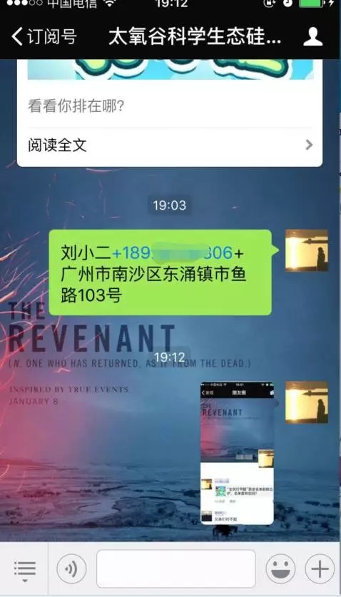 第二步:發送截圖的同時,附注個人信息,“姓名+手機+地址”,例如:劉XX+189*****306+廣州市南沙區東涌鎮市魚路103號。