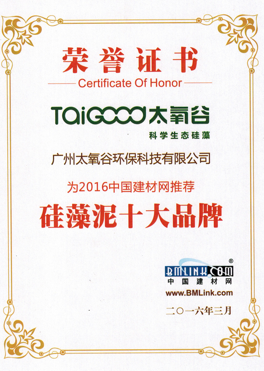 太氧谷2016再獲中國建材網“硅藻泥十大品牌“殊榮