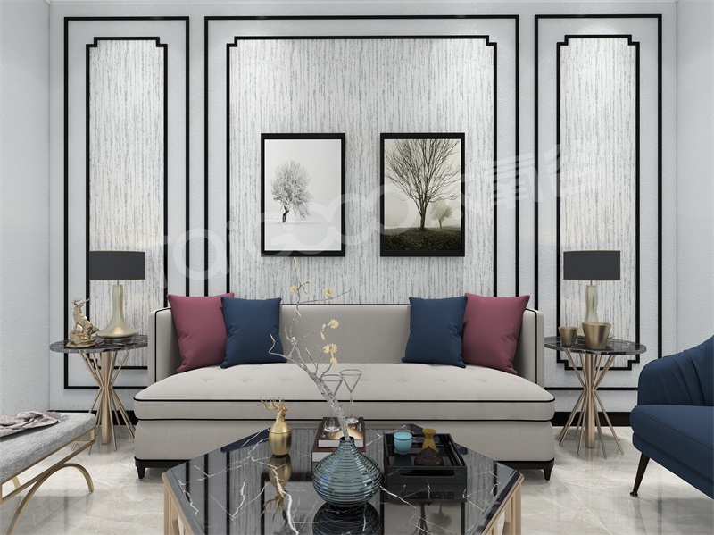 藝術線條橫線的平穩,豎線的冷靜,縱橫交織,造就了現代空間的節奏感,搭配太氧谷硅藻泥現代簡約的紋理,空間里擺放一些金屬元素的小裝飾,體現出空間藝術效果的同時,還增加了空間質感。