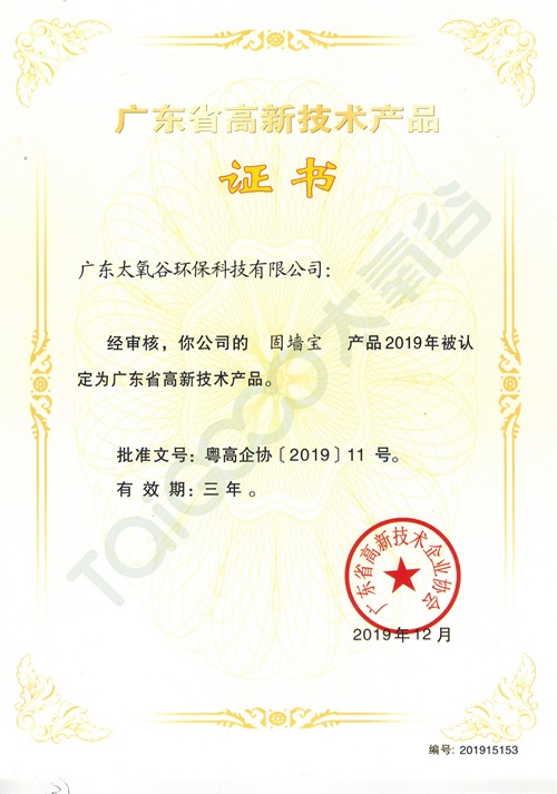 太氧谷產品從自主申報、專家評審、擬公示等規定程序,經過層層嚴苛的審核,最終獲得“廣東省高新技術產品”認證殊榮!這標志著太氧谷產品在環保建材領域的創新研發、技術落地轉化能力等得到國家充分的肯定與認可。