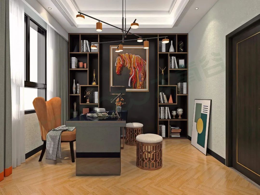 書房的整個空間搭配,給人感覺沉穩大氣有格調,彰顯屋主的不凡品位,完美演繹對高品質生活細節的追求,以及尊重生活質量的生活方式。