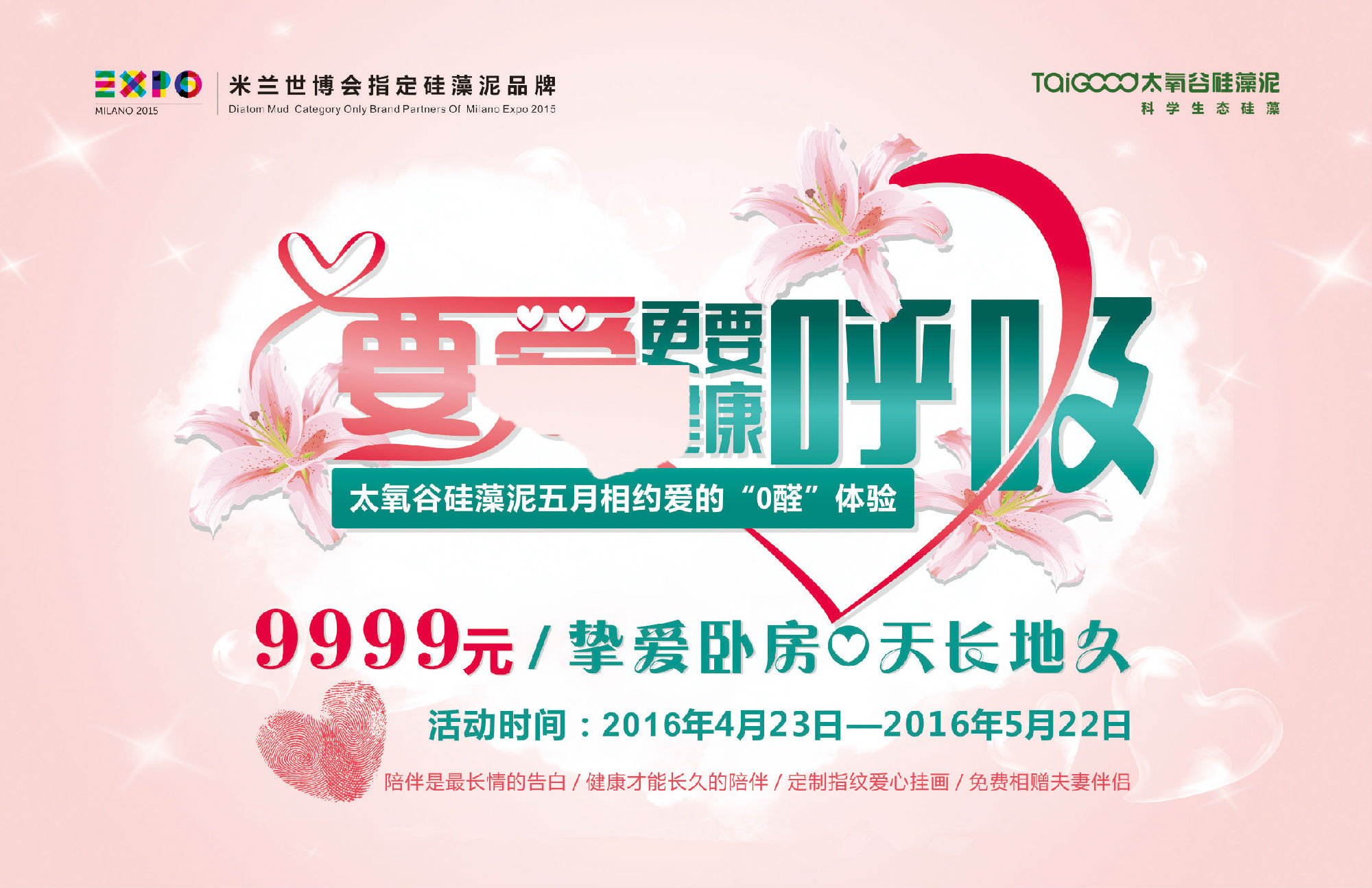 太氧谷認為,自由健康呼吸本是您的基本權利,我們所做的,就是讓健康呼吸的權利還給你,5月活動以“要愛、更要健康呼吸”為主題,并推出“0醛•愛“主題的配套新品,守護人間大愛,這里面有夫妻伴侶之愛,有對長輩的愛,更是對孩子最深沉的愛。太氧谷永遠堅定與你一起,倡導”世界無醛“,為自在健康呼吸,為無醛環境,貢獻自己的一份原生態正能量!