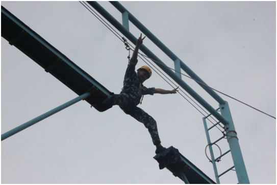 第一個是高空個人挑戰(zhàn)項目,這是一次自我膽識的挑戰(zhàn)。成員當中有些人恐高,有些女生還沒上去就直言害怕,有些怎么都跨不出去那一步,在對教練安全措施絕對的信任下,在同事之間的打氣和激勵之下,他們戰(zhàn)勝了恐懼,邁出了人生意義上的第一步。當我們面對一些看似不可能完成的任務時,不過是心理的恐懼在阻礙著我們前進,只要鼓起勇氣沖破恐懼,再加上團隊的支持和彼此的信任鼓勵,沒有任何困難能阻礙我們進取的腳步!