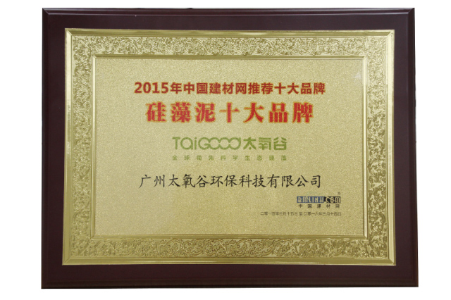 太氧谷硅藻泥榮獲2015中國建材網“硅藻泥十大品牌”殊榮。