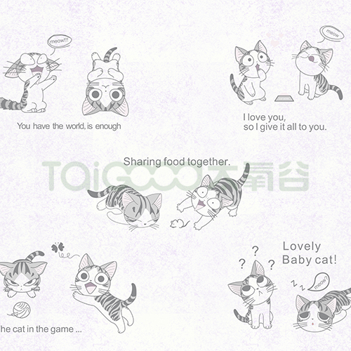 百變俏皮的起司貓,最萌不過天然呆,每一個大眼汪汪、純真無邪的表情都萌到犯規,這么多甜美可愛的貓咪陪伴,無論大小朋友,都是無法抗拒的吧!甜美、可愛、呆萌、百變;適用于兒童房或少女房全房、背景墻或墻裙。
