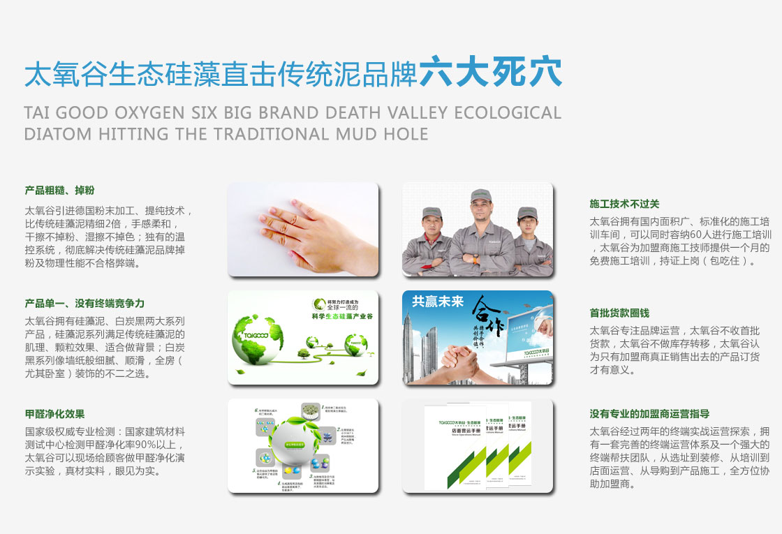 三、選對品牌,太氧谷,以科學態度取材于大自然,以更新的科學方法,掌握生態硅藻核心技術,精研出新生代硅藻泥,快速分解甲醛,有效解決室內空氣污染和裝修二次污染。生產的產品先后通過國家建筑材料測試中心各項指標檢測,同時先后獲批五項實用新型專利,并申報一項國家發明專利,相繼獲得中國硅藻泥行業十大競爭力品牌、中國建材網十大硅藻泥品牌、中國硅藻泥行業十大最受消費者喜愛品牌等榮譽稱號。太氧谷憑借完美的硅藻泥品質以及品牌整體實力,從行業眾多品牌中脫穎而出,成為2015米蘭世博會及國際信息發展組織指定硅藻泥品牌。