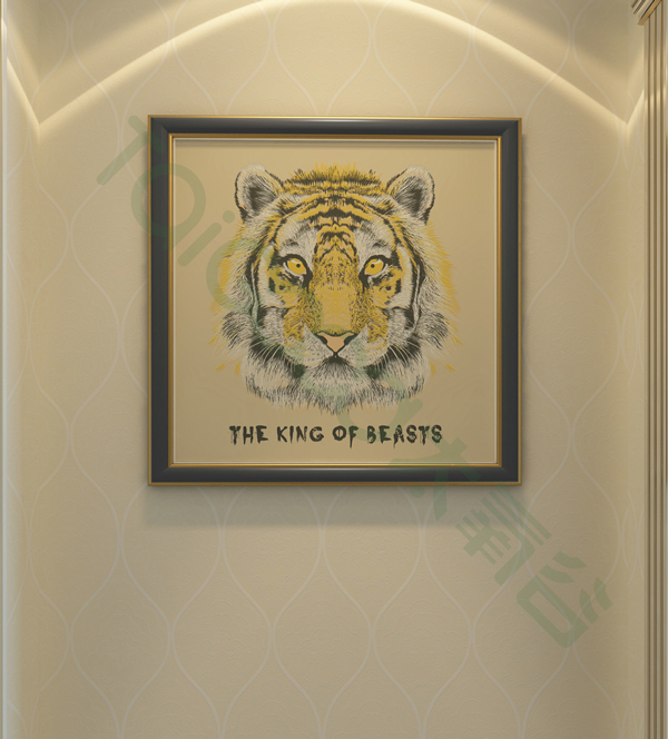 老虎自帶與生俱來的霸氣,英明神武、不怒自威,是天生的王者,是勇氣與魄力的象征;用硅藻泥著色,還原老虎的真實生動,眼神的靈動、虎須毛發的松柔質感,栩栩如生。