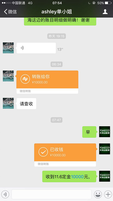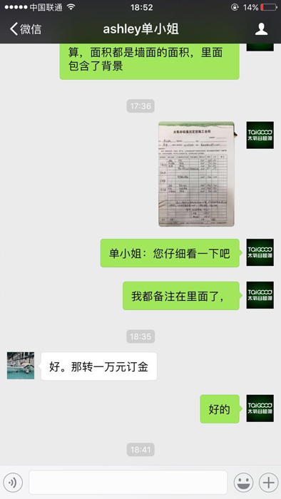當天活動結束后,有一位業主客戶仍然要下定太氧谷,但是銀行卡已限額當天無法轉賬,第二天該業主一早就將一萬塊定金直接微信轉賬下定了,行動效率驚人!單小姐這一舉動完全是源于對硅藻泥的完全認可、對青浦店服務的萬分滿意、對品牌的充分信任,也側面證明了太氧谷硅藻泥良好口碑和美譽度。