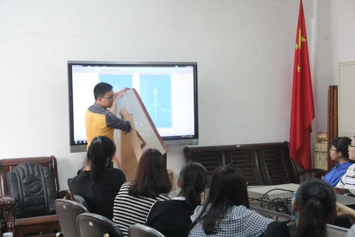 為了讓學生在產品開發過程中得到幫助,明確產品開發需求,太氧谷產品開發設計師李少岳還為學生上了一堂產品開發知識課,從太氧谷的品牌特色、產品開發的方向和需求、實際操作的主要流程,具體到如何挑選提煉素材、開發的某些細節和關鍵點,都一一為學生進行了詳解和演示。針對目前學生提交的作品,肯定了其中具有創意的部分,也指出了一些作品的不足,對修正和改進給予了指導和建議。最后,由于學生還有課程安排,本次座談會在學生們意猶未盡的提問中結束。