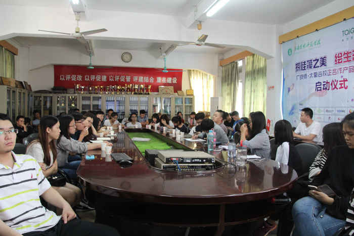 本著強強聯合產教相融的共同目標,2016年11月15日,在廣東技術師范學院綜合樓會議室,太氧谷硅藻泥攜手廣東技術師范學院機電學院工業設計系正式啟動了以“探硅藻之美、繪生態之家”為主題的硅藻泥產品開發合作項目,與此同時,雙方就“基于太氧谷品牌特色的裝飾花型開發設計”的課題研究開展了指導交流座談會。機電學院羅紀旋書記、周莉副院長、呂欣欣副主任,劉翔老師、徐曉莉老師、太氧谷品牌總監詹耀東、空間設計部經理李建立、產品開發設計師李少岳以及工業設計系四十多名學生共同參與了此次啟動儀式暨座談會。