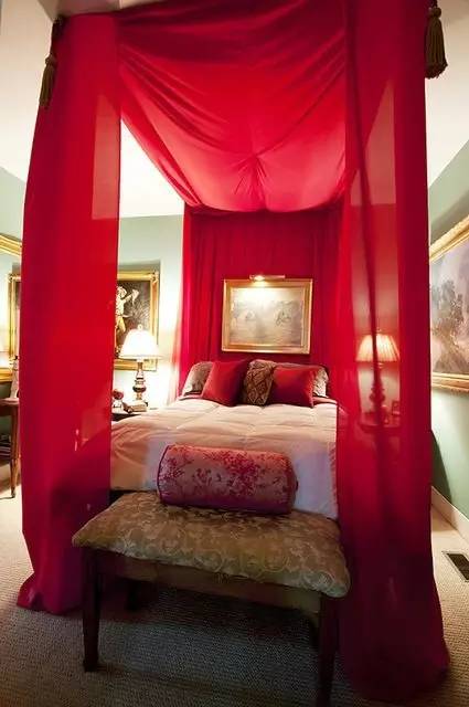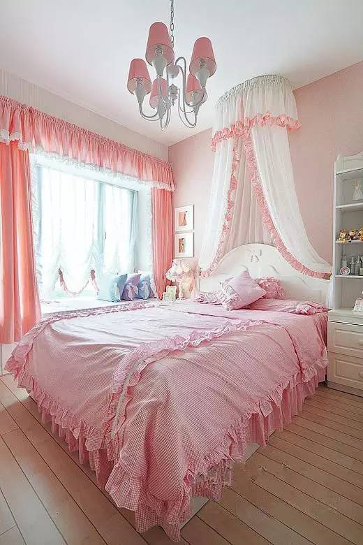 唯美的臥室還是可以很輕易的實現,輕紗帷帳,夢幻的顏色向來是女孩子的最愛,放下帷帳把床包圍起來成為一個只屬于自己的私密空間~