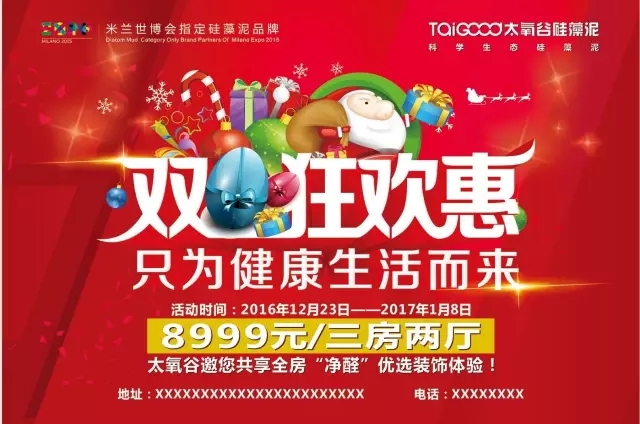 太氧谷硅藻泥此次的雙旦“狂歡”惠,也突發奇想地,設置了一個雙旦雙套餐這樣的選擇題給業主客戶,您可以選擇套餐A,也可以選擇套餐B,當然也可以什么都不選,只是您的選擇,決定了你跟別人未來不一樣的生活!