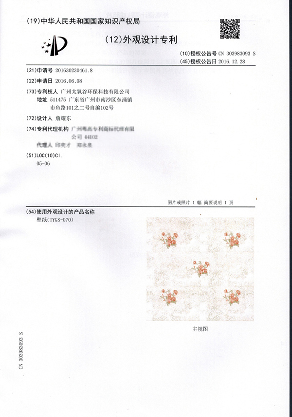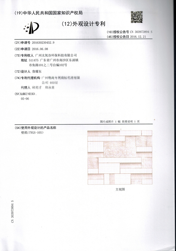 外觀設計專利的獲得是對設計師能力的肯定,也是太氧谷硅藻泥繼續堅持工藝創新的強大動力!太氧谷研發設計中心將加大產品工藝研發力度,創造出更具特色的產品,申請更多的國家專利,為太氧谷硅藻泥的市場推廣奠定堅實的基礎,展示太氧谷作為行業領軍品牌引領硅藻泥流行趨勢的魄力以及在硅藻泥工藝領域保持超前永不懈怠的決心!