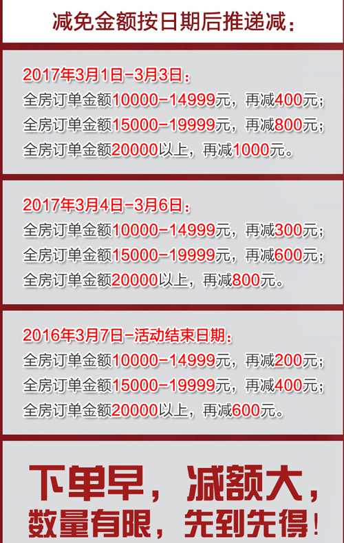 凡全房下定的客戶交滿一定數額定金,可直接優惠減現!不是抵扣,不是送券,而是直接減現金,最高可達1200元!