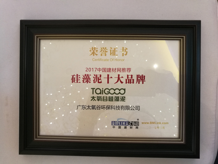 與此同時,“2017中國建材網推薦品牌”頒獎典禮也公布了評選的結果,包括硅藻泥、陶瓷、衛浴、櫥柜/衣柜等共計11個建材行業百多家企業榮譽上榜。中國建材網是建材行業最權威、客戶最多,數據最豐富、訪問量最高的唯一國字號建材類網站,十大品牌由網絡投票和專家評審團綜合評定,榮膺“十大品牌”的企業,在企業規模、產品質量、社會貢獻、品牌影響力以及技術創新等方面都是同行業中的佼佼者!太氧谷硅藻泥在2016年繼續堅守初心,堅定走專業化品牌發展路線,夯實基礎、修煉內功,品牌建設和管理方面取得了業內有目共睹的佳績,連續三年獲評中國建材網推薦“硅藻泥十大品牌”,排名穩居行業前三位,光環矚目!