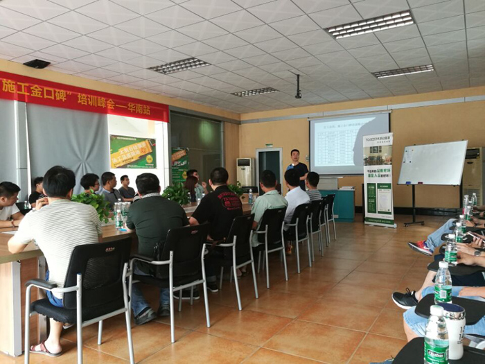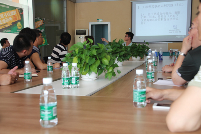 在當今社會分工越來越明細、專業化要求越來越高的時代,對企業精細化管理要求的重要性尤為凸顯。在張總激情的開場白之后,施工部經理許潤才先生圍繞施工管理、匠工品質兩大塊開展了長達兩個小時的講解與培訓。許經理強調任何高品質硅藻泥產品完成的背后都需要一個良好的施工習慣和標準化的施工規范去支撐。一個專業技師的優秀不是與生俱來的,但一個優秀的技師一定是從樹立施工高品質意識、從良好的工作習慣中培養而來的。一個剛入門技師也許初期技藝不夠精湛,但是必須要態度先行,嚴格要求自身,從整理工具的小事做起,干凈良好的工具再加上規范化的施工是一個初級技師必須反復加強練習的基本功!